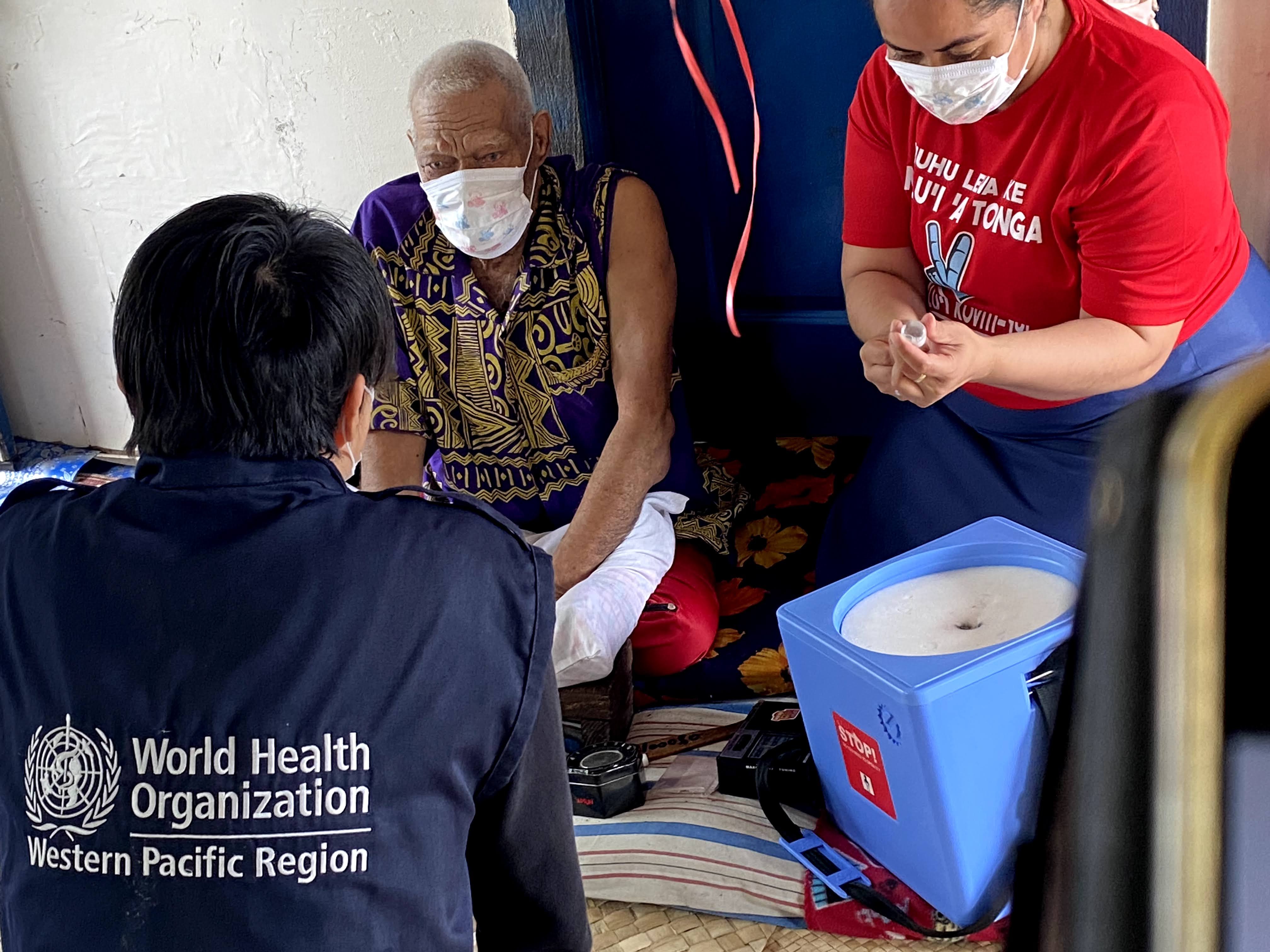 WHO and partners are supporting Pacific island countries and areas to reach the hardest to reach populations with COVID-19 vaccines, such as in the remote Ha’apai islands of Tonga, which were later heavily affected by a volcanic eruption and tsunami. Photo: WHO/Yutaro Setoya