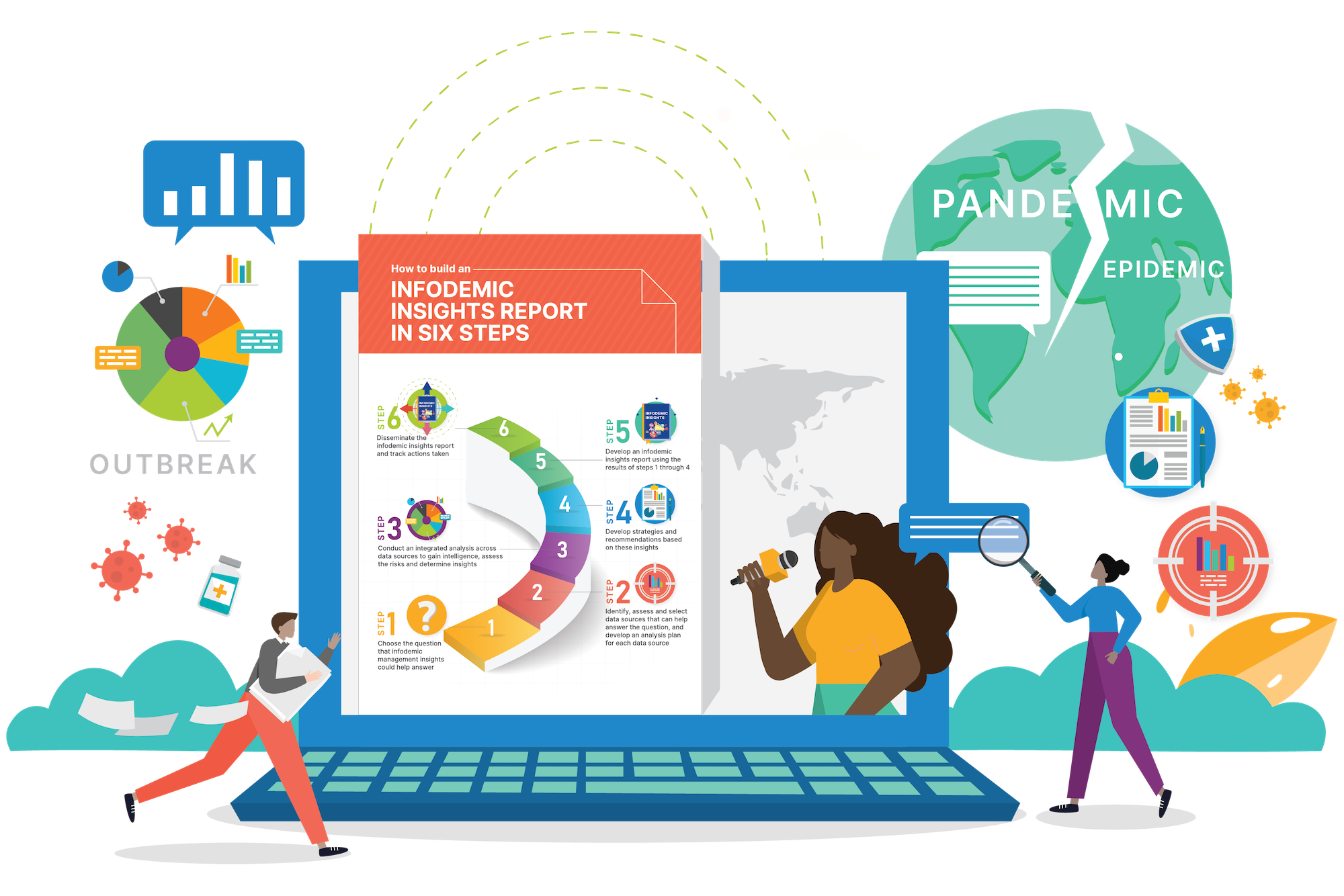 The infodemic insights manual provides guidance for each of the six steps to building an insights report, which include: