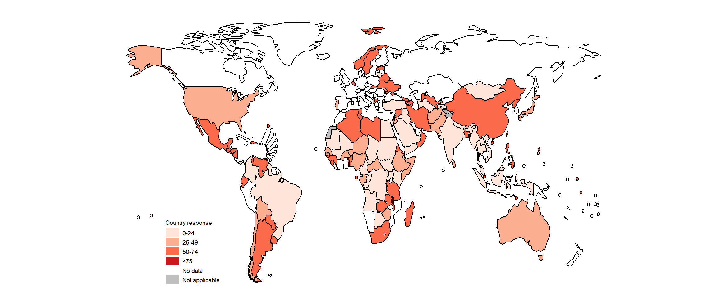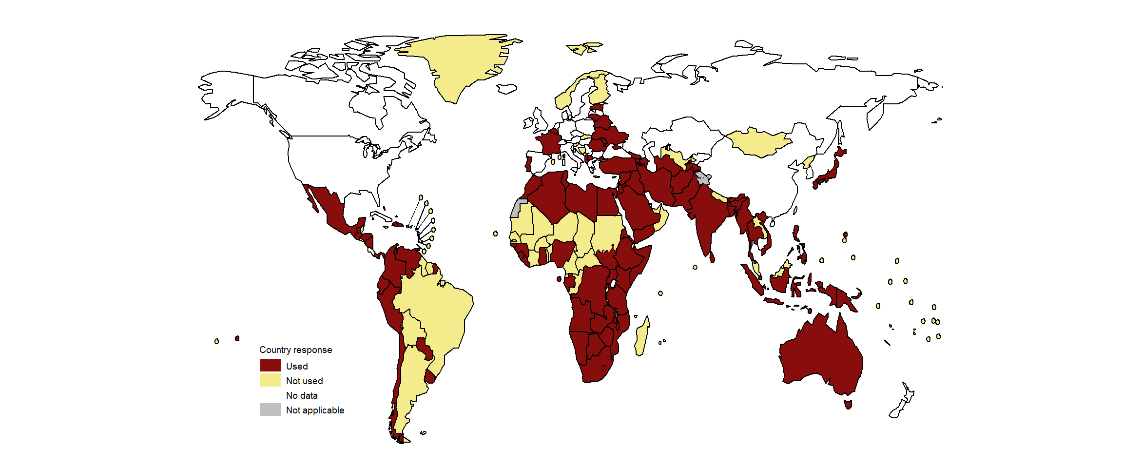 Fig. 3.4.6 Countries that used bedaquiline for the treatment of MDR/XDR-TB as part of expanded access, compassionate use or under normal programmatic conditions by the end of 2020