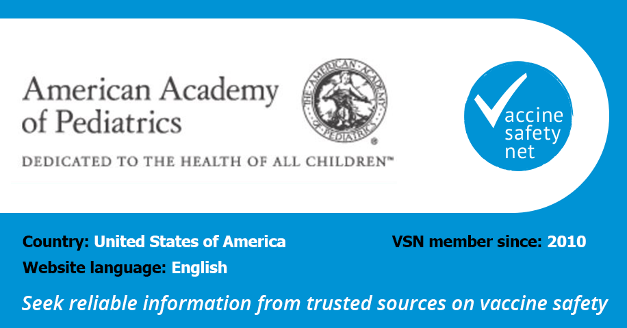 The website of the Immunization pages of the American Academy of Pediatrics is a member of the WHO-led project Vaccine Safety Net (VSN).